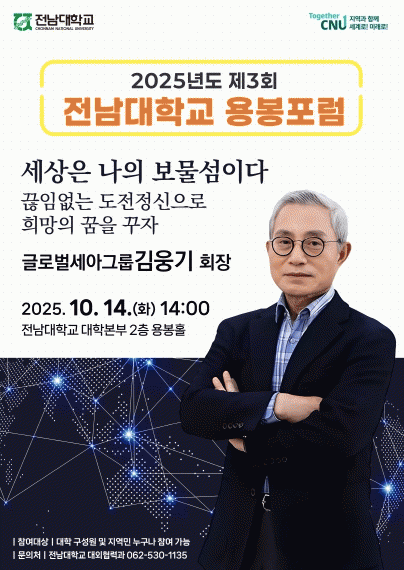 9ÀÏ Àü³²´ëÇб³(ÃÑÀå À̱ٹè)¿¡ µû¸£¸é, ¿À´Â 10¿ù 14ÀÏ ¿ÀÈÄ 2½Ã, ±¹Á¦È¸Àǵ¿ 2Ãþ ¿ëºÀȦ¿¡¼ ¡®2025 Á¦3ȸ Àü³²´ëÇб³ ¿ëºÀÆ÷·³¡¯À» °³ÃÖÇÑ´Ù.