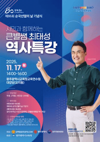 ½Ã±³À°Ã»Àº Ư°¿¡ ¾Õ¼ °°Àº Àå¼Ò¿¡¼ ±¤º¹È¸±¤ÁÖ±¤¿ª½ÃÁöºÎ, ±¤ÁÖ±¤¿ª½Ãû, ±¤ÁÖÁö¹æº¸ÈÆÃ» ÁÖÃÖ·Î ¡®Á¦86ȸ ¼ø±¹¼±¿¡¤¾Ö±¹Áö»çÀÇ ³¯ ±â³ä½Ä¡¯ Çà»ç¸¦ °³ÃÖÇÑ´Ù.