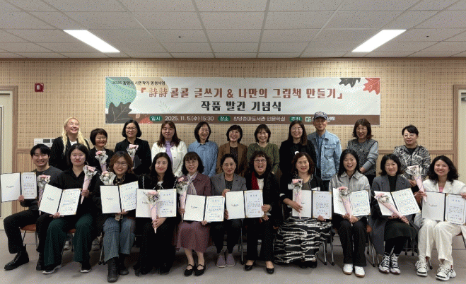 À̳¯ ±â³ä½Ä¿¡´Â »ç¾÷¿¡ Âü¿©ÇÑ ½Ã¹Î°ú °ü°èÀÚµéÀÌ Âü¼®ÇßÀ¸¸ç, ½Ã¹Î ÀÛ°¡¸¦ ´ëÇ¥ÇØ 2¸íÀÇ ÀÛ°¡°¡ ½Ã¿Í ±×¸²Ã¥À» ³¶µ¶Çß´Ù. Âü¼®ÀÚµéÀº ¼·ÎÀÇ ÀÛǰÀ» °¨»óÇϸç âÀÛÀÇ ±â»Ý°ú ¼ºÃ븦 ÇÔ²² ³ª´©´Â ¶æ±íÀº ½Ã°£À» °¡Á³´Ù.