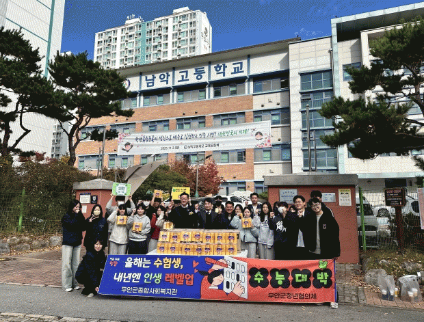 À̳¯ Çà»ç¿¡´Â ¹«¾È±ºÁ¾ÇÕ»çȸº¹Áö°ü Á÷¿øµé°ú ¹«¾È±ºÃ»³âÇùÀÇü ȸ¿ø µî 30¿© ¸íÀÌ ÇÔ²² Âü¿©ÇÏ¿© ¼öÇè»ýµé¿¡°Ô ¡®¿ÃÇØ´Â ¼öÇè»ý, ³»³â¿¡´Â Àλý ·¹º§¾÷¡¯¸Þ¼¼Áö¿Í ÇÔ²² Á¤¼º½º·´°Ô ÁغñÇÑ ÀÀ¿ø¹°Ç°À» Àü´ÞÇϸç, µû¶æÇÑ ¸¶À½À» Àü´ÞÇß´Ù.