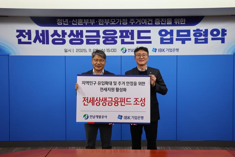 °ø»ç´Â 26ÀÏ IBK±â¾÷ÀºÇà°ú ÇÔ²² ¡®Àü¼¼»ó»ý±ÝÀ¶ÆÝµå¡¯ ¾÷¹«Çù¾àÀ» ü°áÇÏ¿´´Ù. Àü³²°³¹ß°ø»ç¿Í IBK±â¾÷ÀºÇàÀÌ Á¶¼ºÇÑ 40¾ï ¿øÀÇ ¡®Àü¼¼»ó»ý±ÝÀ¶ÆÝµå¡¯´Â Àü³²µµ¹Î ´ë»ó Àü¼¼ÀڱݴëÃâ ÀÌÀÚÁß 1.95% ±Ý¸®°¨¸éÀ» Áö¿øÇÏ¿© Àü¼¼ °è¾àÀ» ¾ÕµÐ µµ¹ÎÀÇ ºÎ´ãÀ» ÁÙÀ̴µ¥ ¸ñÀûÀÌ ÀÖ¾î 12¿ù ÃÊ ºÎÅÍ ¹Ù·Î ½ÃÇà µÉ ¿¹Á¤ÀÌ´Ù.