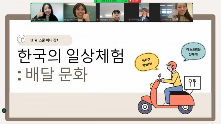 À̳¯ °£´ãȸ¿¡¼´Â Çѱ¹ ¹è´ÞÀÇ Æ¯Â¡°ú ¹è´Þ ¹®ÈÀÇ ¹ßÀü °úÁ¤, ´Ù¾çÇÑ ¹è´Þ À½½Ä Á¾·ù¸¦ »ìÆì º¸¾ÒÀ¸¸ç, ¹è´ÞÀ» ÁÖ¹®ÇÒ ¶§ »ç¿ëÇÒ ¼ö ÀÖ´Â ½¬¿î Çѱ¹¾î Ç¥ÇöÀ» ÇÔ²² ¹è¿ì°í, ½ÇÁ¦ ¹è´Þ ¾Û ȸéÀ» Âü°íÇÏ¿© ÁÖ¹® ¿äû»çÇ×°ú ¸®ºä¸¦ ÀÛ¼ºÇϴ Ȱµ¿À» ÇØ º¸´Â ½Ã°£À» °¡Á³´Ù. ¼ö¾÷ ¸¶Áö¸·¿¡´Â ÀϺ»ÀÇ ¹è´Þ ¹®È¿Í ºñ±³ÇÏ°í ¼·ÎÀÇ °æÇèÀ» ³ª´©¸ç Çѱ¹ »ýȰ Àü¹Ý¿¡ ´ëÇØ ÀÚÀ¯·Ó°Ô À̾߱⸦ ³ª´©¾ú´Ù.
