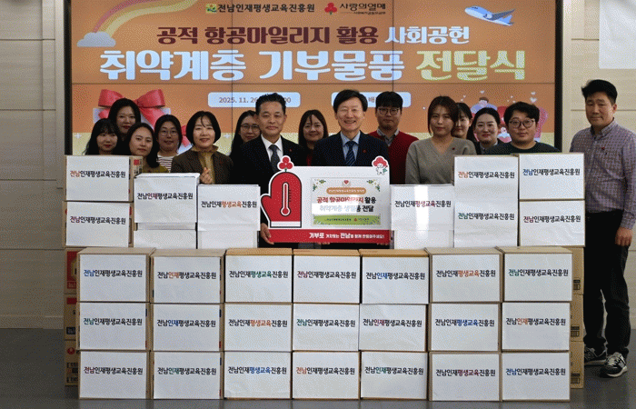 ÀÓÁ÷¿ø °ø¹«ÃâÀå µîÀ¸·Î Àû¸³µÈ °øÀû Ç×°ø¸¶Àϸ®Áö¸¦ ¸ð¾Æ Ç×°ø»ç ¸¶Àϸ®Áö¸ôÀ» ÅëÇØ »ýÇÊǰÀ» ±¸¸ÅÇÑ ÈÄ, ÃÑ 125¸¸ ¿ø »ó´çÀÇ »ýÇÊǰ 50¹Ú½º¸¦ ¹«¾È Àú¼Òµæ ¼¼´ë¿¡ Àü´ÞÇÑ °Í. ±âºÎ¹°Ç°Àº Àü³²»çȸº¹Áö°øµ¿¸ð±Ýȸ¸¦ ÅëÇØ Ãë¾à°èÃþ °¡Á¤¿¡ ¼øÂ÷ÀûÀ¸·Î ¹èºÐµÉ ¿¹Á¤ÀÌ´Ù.