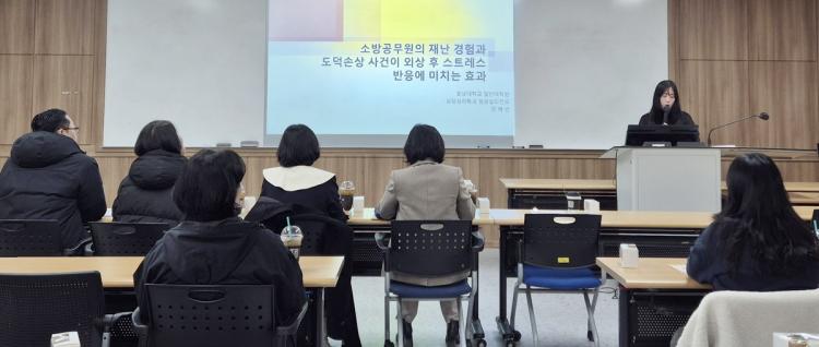 ÀÓ»ó½É¸® Àü°ø ÀåÇØºó ¼®»ç°úÁ¤»ýÀÌ ¡®¼Ò¹æ°ø¹«¿øÀÇ Àç³ °æÇè°ú µµ´ö ¼Õ»ó »ç°ÇÀÌ ¿Ü»ó ÈÄ ½ºÆ®·¹½º ¹ÝÀÀ¿¡ ¹ÌÄ¡´Â È¿°ú¡¯¸¦ ÁÖÁ¦·Î ¿¬±¸ ¸ñÀû ¹× ³»¿ë, ¼±Çà ¿¬±¸¿Í º» ¿¬±¸ °¡¼³ ¼Ò°³, ¿¬±¸ ¹æ¹ý ¼³¸í µîÀ» ¹ßÇ¥Çß´Ù.