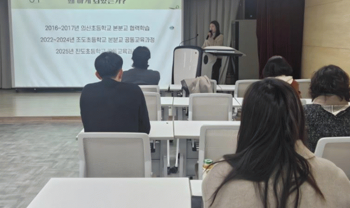 ¼Ò±Ô¸ð Çб³ °£ °øµ¿ ±³À°°úÁ¤À» ¿î¿µÇϰí ÀÖ´Â ÀǽÅÃÊ ¿ÀÁÖ¼± ±³»ç¿Í ÁøµµÃÊ ¹ÚÁöÁ¤ ±³»ç°¡ °»ç·Î Âü¿©ÇØ °øµ¿±³À°°úÁ¤ Áغñ °úÁ¤, ¿Â¡¤¿ÀÇÁ¶óÀÎ µµ±¸ Ȱ¿ë ¹æ¹ý, Çг⺰ Æí¼º ¿î¿µ Àü·« µîÀ» ¼Ò°³ÇÏ¸ç ½ÇÁúÀûÀÎ ½ÇÇà °æÇèÀ» Àü´ÞÇÑ´Ù.