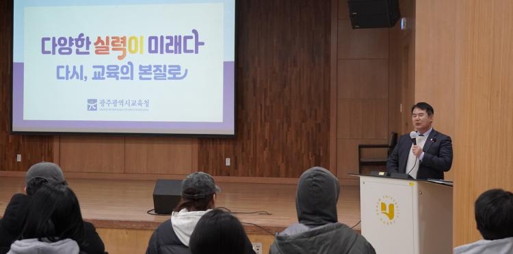 ±³À°°¨Àº ¡°±¤ÁÖ´Â 14°³ ºÐ¾ß¿¡¼ ÃÖ¿ì¼ö ¼º°ú¸¦ ´Þ¼ºÇϰí, ±¹ºñ 1,000¾ï ¿ø ÀÌ»óÀ» È®º¸ÇÏ´Â µî ±³À° °æÀï·ÂÀ» ³ôÀ̰í ÀÖ´Ù¡±¸ç ±¤ÁÖ±³À°ÀÇ ¼º°úµµ ¼Ò°³Çß´Ù.