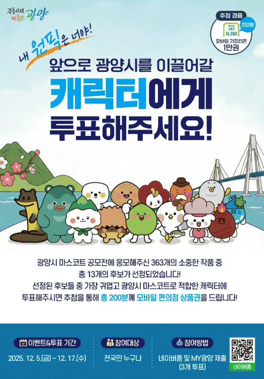 ½Ã´Â À̹ø ¼±È£µµ ÅõÇ¥¸¦ ±¤¾ç½ÃÀÇ ¹Ì·¡¸¦ ÇÔ²² ¸¸µé¾î°¡´Â Áß¿äÇÑ °úÁ¤À¸·Î º¸°í, Àû±ØÀûÀÎ Âü¿©¸¦ À¯µµÇϱâ À§ÇØ ÅõÇ¥ Âü¿©ÀÚ Áß ÃÑ 200¸íÀ» ÃßÃ·ÇØ 1¸¸ ¿ø »ó´çÀÇ ¸ð¹ÙÀÏ ÆíÀÇÁ¡ »óǰ±ÇÀ» Á¦°øÇÒ ¿¹Á¤ÀÌ´Ù.