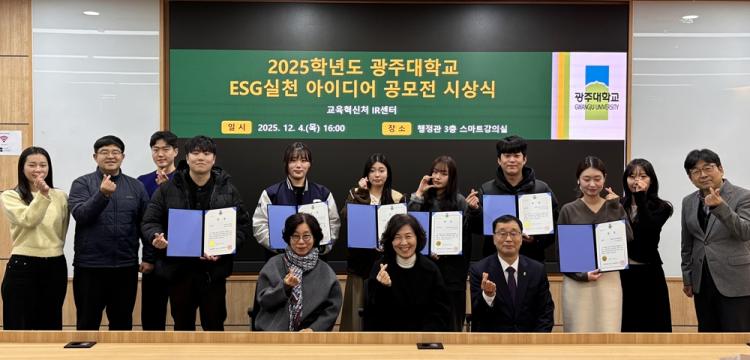 ±¤ÁÖ´ëÇб³´Â ¾ÕÀ¸·Îµµ ESG ±â¹Ý Ä·ÆÛ½º Á¶¼º°ú Áö¼Ó°¡´ÉÇÑ ¹ßÀüÀ» À§ÇØ Çлý Âü¿©Çü ÇÁ·Î±×·¥À» È®´ëÇϸç, ´ëÇÐ ±¸¼º¿øÀÌ ÇÔ²² ½ÇõÇÏ´Â °Ç°ÇÑ ESG ¹®È¸¦ ±¸ÃàÇØ ³ª°¥ °èȹÀÌ´Ù.