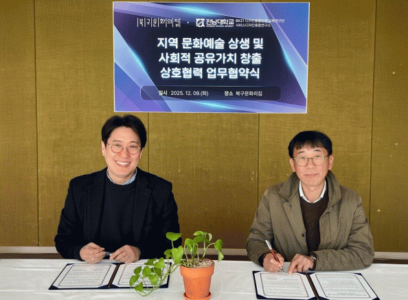 11ÀÏ Àü³²´ë¿¡ µû¸£¸é, Àü³²´ëÇб³ BK21 ÈÞ¸ÕÄɾî Áö´ÉÇü ¹®È­¿¹¼úÄÜÅÙÃ÷ÀÇ µðÀÚÀÎÀ¶ÇÕÀÎÀç¾ç¼º ±³À°¿¬±¸´Ü(¾ÆÆ®¡¤µðÀÚÀÎÅ×Å©³î·ÎÁö Çùµ¿°úÁ¤)°ú ºÏ±¸¹®È­ÀÇÁýÀº Áö³­ 9ÀÏ Áö¿ª ¹®È­¿¹¼ú »ó»ý ¹× »çȸÀû °øÀ¯°¡Ä¡ ½ÇÇöÀ» À§ÇÑ ¾÷¹«Çù¾à(MOU)À» ü°áÇß´Ù.