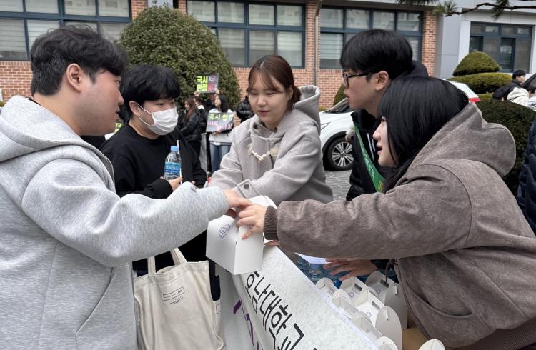Çаú ±³¼öµé°ú Çлýȸ ÀÓ¿øµéÀº ¡°¹°¸®Ä¡·á»ç ¸éÇã ±¹°¡°í½Ã 100% ÇÕ°Ý¡±À» ÀÀ¿øÇÏ¸ç ¼öÇè»ýµé¿¡°Ô °Ý·ÁÀÇ ¸Þ½ÃÁö¿Í ¼±¹°À» Àü´ÞÇϸç ÇÕ°ÝÀ» ±â¿øÇß´Ù.