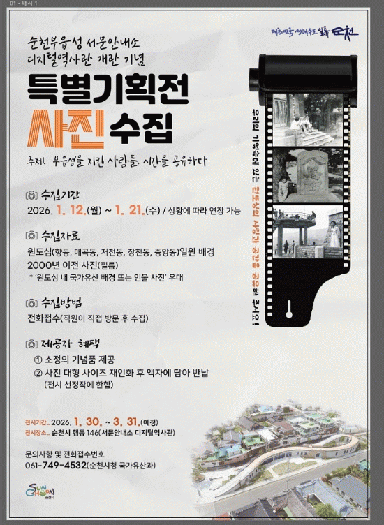 »õ·Ó°Ô ´ÜÀå ÁßÀÎ ¡®¼øÃµºÎÀ¾¼º ¼¹®¾È³»¼Ò µðÁöÅпª»ç°ü¡¯Àº Áö¿ª°ú ¿øµµ½ÉÀÇ ¿ª»ç ¹®È¸¦ ÀÔüÀûÀ¸·Î º¼ ¼ö ÀÖ´Â °ø°£°ú Áö¿ª¹ÎÀÌ Á÷Á¢ ÀڽŵéÀÇ À̾߱⸦ ´ãÀ» ¼ö ÀÖ´Â °ø°£À¸·Î ±¸¼ºÇßÀ¸¸ç, ¿À´Â 1¿ù ¸» °³°üÇÒ ¿¹Á¤ÀÌ´Ù.