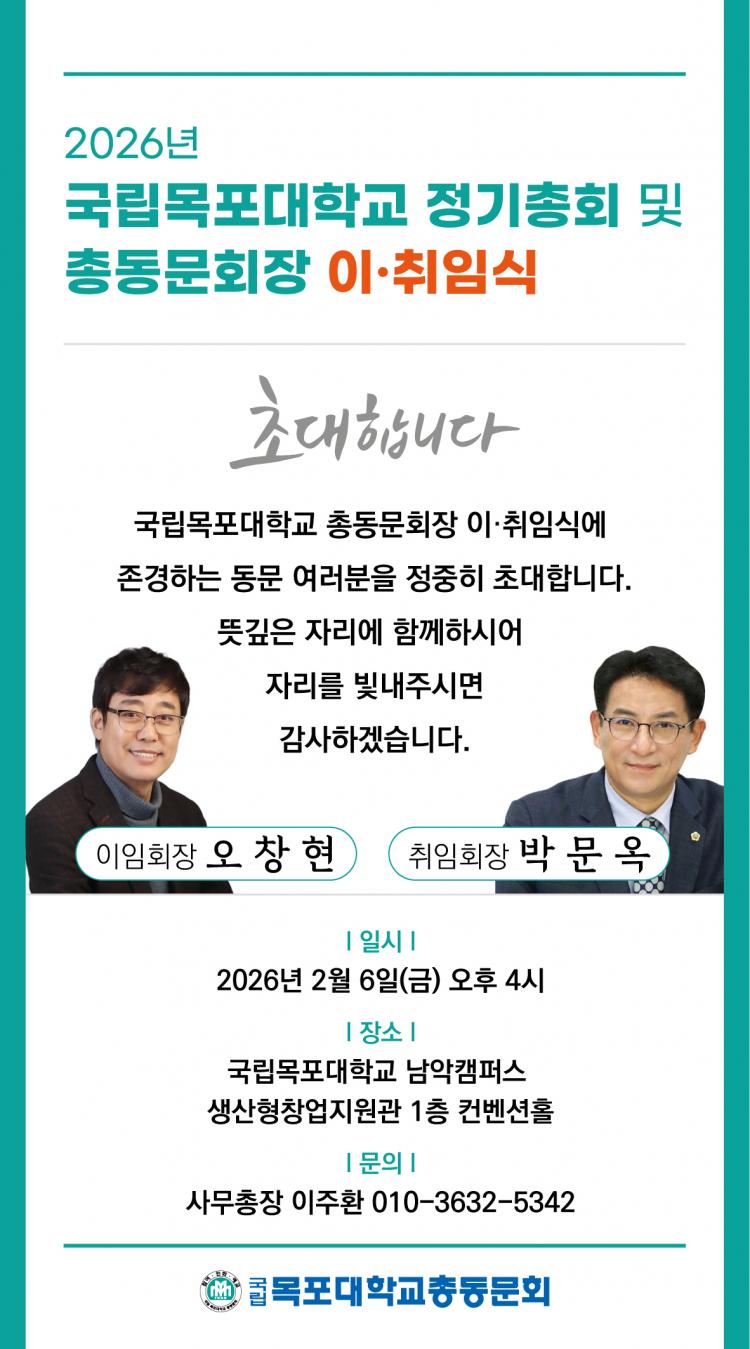 ¼ÛÇÏö ±¹¸³¸ñÆ÷´ëÇб³ ÃÑÀåÀº ¡°Áö³ Àӱ⠵¿¾È Ãѵ¿¹®È¸¸¦ Çõ½ÅÀûÀ¸·Î À̲ö ¿ÀâÇö ȸÀåÀÇ Çå½Å¿¡ °¨»çµå¸°´Ù¡±¸ç ¡°»õ·Ó°Ô ÃëÀÓÇÑ ¹Ú¹®¿Á ȸÀåÀÇ ¸®´õ½Ê ¾Æ·¡ Ãѵ¿¹®È¸°¡ ÅëÇÕ´ëÇÐ Ãâ¹ü°ú Àǰú´ëÇÐ À¯Ä¡ µî Áß¿äÇÑ °úÁ¦¸¦ ÇÔ²² Ç®¾î³ª°¡´Â µçµçÇÑ µ¿¹ÝÀÚ°¡ µÇ±æ ±â´ëÇÑ´Ù¡±°í ¸»Çß´Ù.