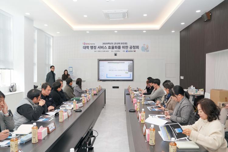 °øÃ»È¸´Â 2025³âµµ Á¶¼±´ëÇб³ ±³À°¼ö¿äÀÚ ¸¸Á·µµ Á¶»ç °á°ú ºÐ¼®À» ½ÃÀÛÀ¸·Î, KT ¹ýÀÎ°í°´¿µ¾÷ÆÀ °íº´¿Á Â÷Àå, KTCS AICC ¼Ö·ç¼Ç»ç¾÷ÆÀ À¯¼ø¹Ì Â÷ÀåÀÇ ¹ßÇ¥·Î À̾îÁ³´Ù. ¹ßÇ¥ÀÚµéÀº ´ëÇÐ ÇàÁ¤ÀÇ È¿À²¼ºÀ» ³ôÀ̱â À§ÇÑ ¼Ö·ç¼ÇÀ¸·Î ¹ß½ÅÁ¤º¸¾Ë¸®¹Ì ¼ºñ½º¿Í AI º¸À̽ºº¿ µµÀÔ ¹æ¾ÈÀ» Á¦½ÃÇß´Ù.