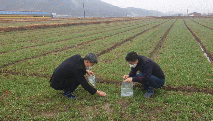 °Áø±º³ó¾÷±â¼ú¼¾ÅÍ ÃÖ¿µ¾Æ ¼ÒÀåÀº ÁÖ¿ä ÇöÀåÀ» ¹æ¹®ÇØ ¡°¿ùµ¿ÀÛ¹°ÀÎ ¸Æ·ù´Â »ýÀ°Àç»ý±â ÀÌÈÄ ¿ô°Å¸§ ½Ãºñ¿Í ¹è¼ö·Î Á¤ºñ°¡ ¹«¾ùº¸´Ù Áß¿äÇÏ´Ù¡±¸ç ¡°¿ô°Å¸§Àº ÀûÁ¤·®À» ½ÃºñÇϰí, ¹° ºüÁüÀ» À§ÇÑ ¹è¼ö°ñ Á¤ºñ¿Í ÀâÃÊ Á¦°Å µî Æ÷Àå °ü¸®¿¡ Èû½áÁÖ±æ ¹Ù¶õ´Ù¡±°í ¸»Çß´Ù.