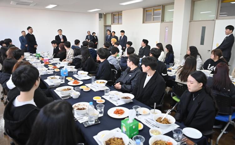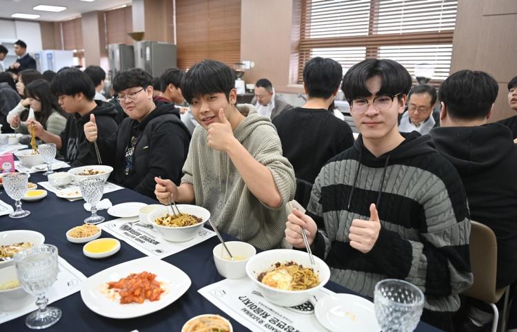 ÇлýµéÀ» °Ý·ÁÇϱâ À§ÇØ Çà»çÀå¿¡ Á÷Á¢ ¹æ¹®ÇØ ½Ä»ç¸¦ ÇÔ²²ÇÑ ¹Ú»óö È£³²´ëÇб³ ÃÑÀåÀº ¡°¿¹·ÎºÎÅÍ ÀÔÇнÄÀ̳ª Á¹¾÷½Ä°ú °°Àº ÀλýÀÇ Áß¿äÇÑ ÀüȯÁ¡¿¡´Â ´Ã Â¥Àå¸éÀÌ ÇÔ²²ÇØ ¿Ô´Âµ¥, ¸Å³â ¿Ü½ÄÁ¶¸®º£ÀÌÄ¿¸®Çаú¿¡¼ ½ÅÀÔ»ýµéÀ» À§ÇØ Á÷Á¢ Á¡½ÉÀ» ´ëÁ¢ÇÏ´Â ÀÌ ¾Æ¸§´Ù¿î ÀüÅëÀ» ±»°ÇÈ÷ À̾î¿À°í ÀÖ¾î ÃÑÀåÀ¸·Î¼ ¸Å¿ì ÀÚ¶û½º·´´Ù¡±°í Ä¡ÇÏÇß´Ù.