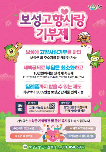¶ÇÇÑ °íÇâ»ç¶û±âºÎ±ÝÀ¸·Î Á¶¼ºµÈ ±â±ÝÀº Áö¿ª ¹®Á¦ ÇØ°á°ú ÁֹΠº¹¸® ÁõÁøÀ» À§ÇÑ »ç¾÷¿¡ Ȱ¿ëµÇ¸ç, º¸¼º³ìÂ÷, ¹ú±³²¿¸· µî Áö¿ª Ư»êǰ Áß½ÉÀÇ ´ä·Êǰ Á¦°øÀ» ÅëÇØ Áö¿ª ¼Ò»ó°øÀÎÀÇ ¸ÅÃâ Áõ´ë¿Í Áö¿ª°æÁ¦ Ȱ¼ºÈ¿¡µµ µµ¿òÀÌ µÉ °ÍÀ¸·Î ±â´ëµÈ´Ù.