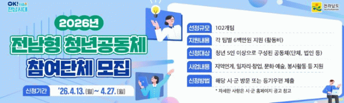 À̹ø »ç¾÷Àº Áö¿ª¿¡¼ Ȱµ¿ ÁßÀΠû³â 5ÀÎ ÀÌ»óÀ¸·Î ±¸¼ºµÈ ÆÀ¡¤¹ýÀΡ¤´Üü¸¦ ´ë»óÀ¸·Î Çϸç, ¼±Á¤µÈ °øµ¿Ã¼¿¡´Â ÆÀ´ç 600¸¸ ¿øÀÇ È°µ¿ºñ¿Í Ãâ¹ü½Ä, ¼º°ú°øÀ¯È¸, ±Ç¿ªº° ³×Æ®¿öÅ© Çà»ç, ¿Â¶óÀÎ È«º¸ µîÀ» Áö¿øÇÑ´Ù.